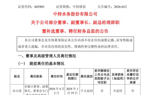中持股份:部分董事、副董事长、副总经理辞职