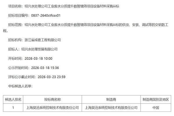 捷报!超3000万| 上海昊沧斩获80万吨全国最大印染废水分质提升数智增效项目