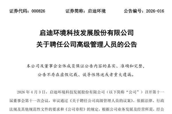 启迪环境聘任刘忠诚为副总经理...