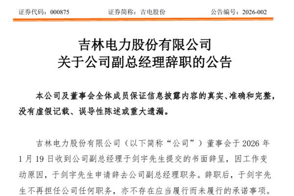 吉电股份副总经理辞职