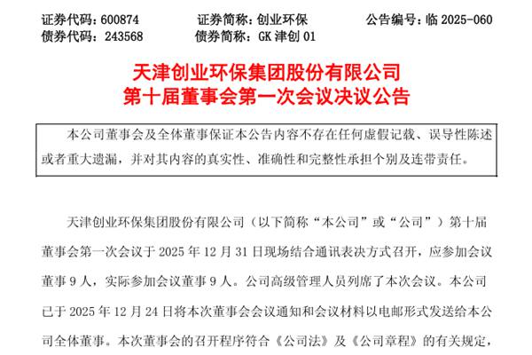 创业环保选举唐福生为董事长 高层“大换血”...