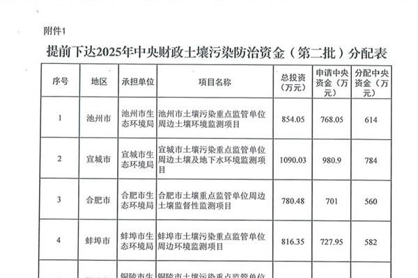 合计10138万元,安徽提前下达2批2025年中央财政土壤污染防治资金