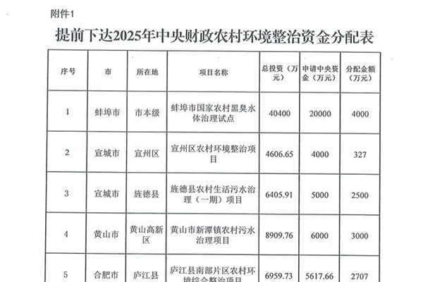 12534万元,安徽提前下达2025年中央财政农村环境整治资金
