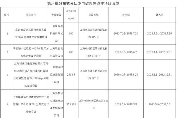 上海碳普惠分布式光伏发电第六批减排项目公布