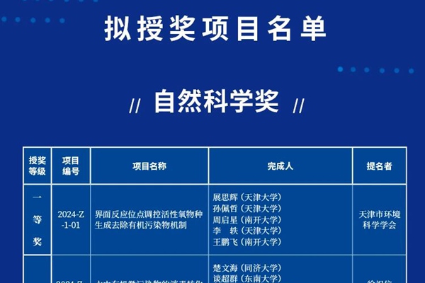71项!2024年度环境保护科学技术奖(自然科学奖、技术发明奖、科技进步奖)拟授奖项目公示