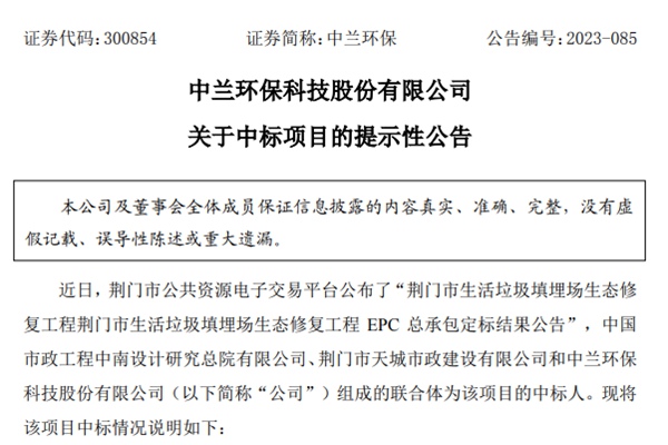 中兰环保中标荆门市生活垃圾填埋场生态修复工程!...
