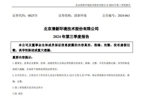 清新环境:前三季度实现营收约58.85亿元,同比减少1.59%