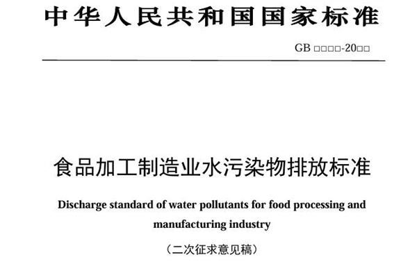 国家生态环境标准《食品加工制造业水污染物排放标准(二次征求意见稿)》公开征求意见