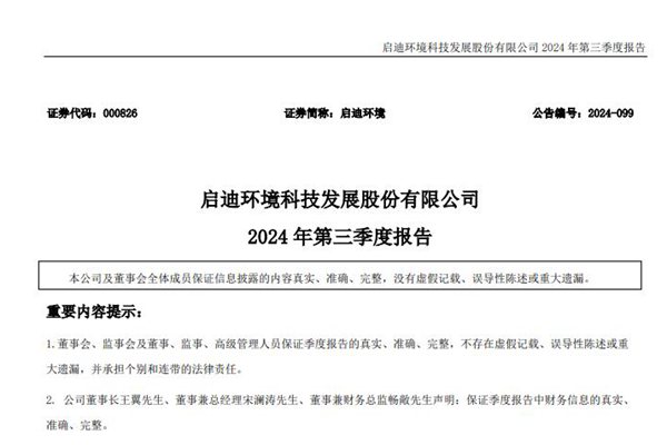 启迪环境:前三季度净利润亏损约11.13亿元...