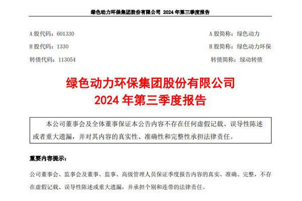 绿色动力:前三季度营收约25.44亿元,同比减少16.37%