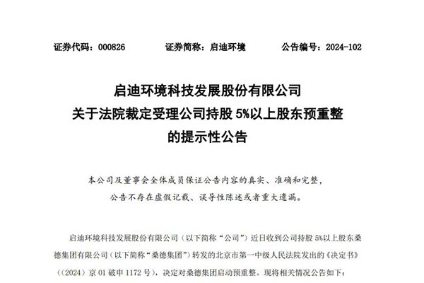 北京市第一中级人民法院决定对桑德集团启动预重整