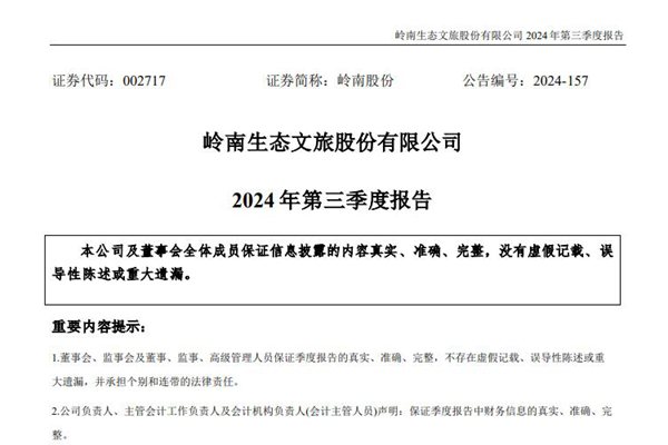 岭南股份:前三季度净利润亏损2.72亿元,同比实现...