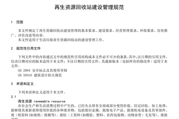 泰州市现行标准丨再生资源回收站建设管理规范(DB3212/T 1112—2022)
