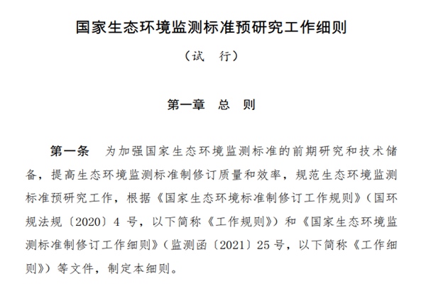 《国家生态环境监测标准预研究工作细则(试行)》印发