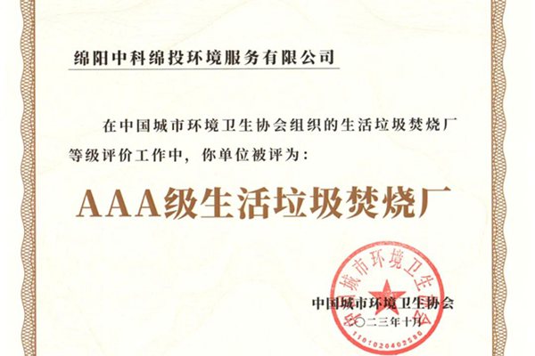 喜报!中科环保新增一家国家AAA级生活垃圾焚烧厂