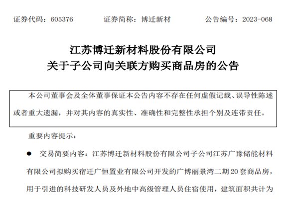 大手笔!一储能企业拟3035万元购房,为研发及外地管理人员提供宿舍!