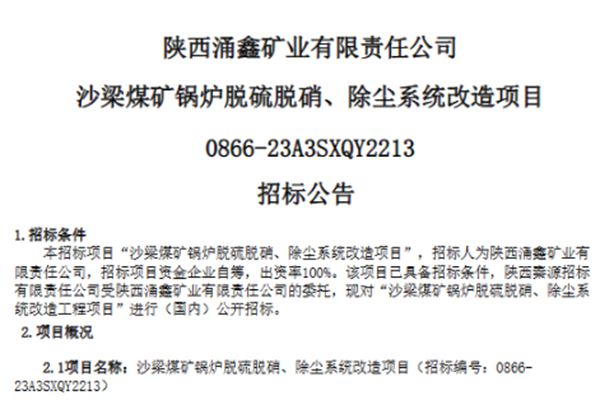 沙梁煤矿锅炉脱硫脱硝、除尘系统改造项目招标