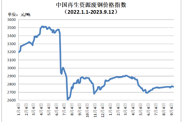 9月12日再生资源废钢价格指数较前一日上涨1元/吨