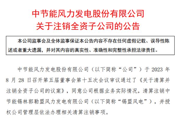 节能风电注销旗下一风电全资子公司!