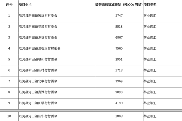 广东省生态环境厅同意汕尾市陆河县7个镇37个村林业碳普惠项目核证减排量备案