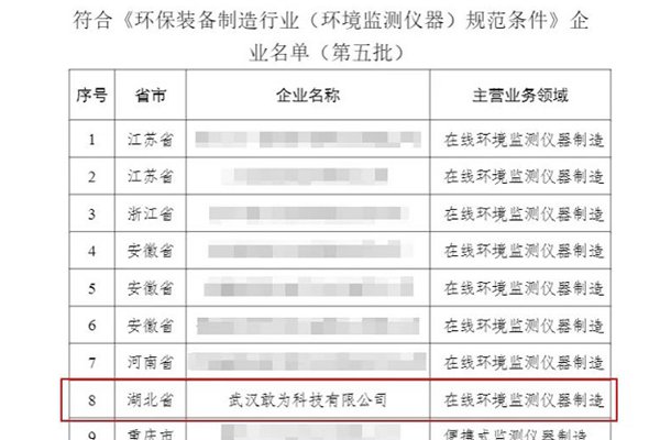 敢为科技入选工信部《环保装备制造行业(环境监测仪器)规范条件》企业名单
