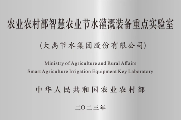 农业农村部智慧农业节水灌溉重点实验室落户大禹节水集团