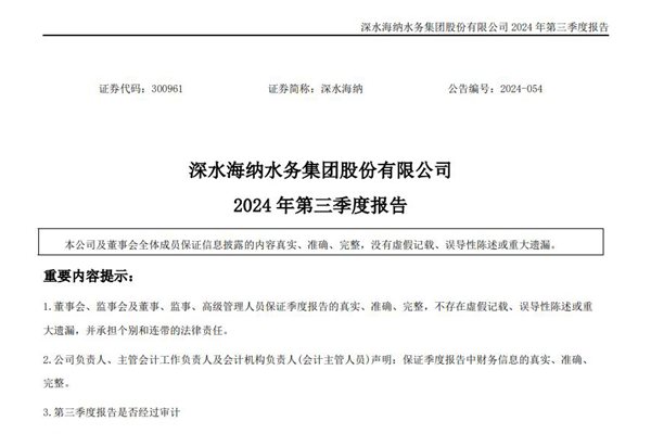 深水海纳:前三季度营收3.11亿元,净利润同比实现...
