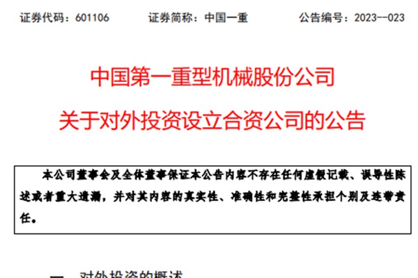 大型央企入局!中国一重联合多家新能源企业,10亿元设立黑龙江新能源开发公司