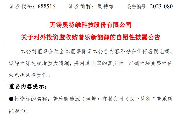 豪掷2.7亿元!扩大光伏产业链核心环节布局,奥特维拟收购普乐新能源100%股权