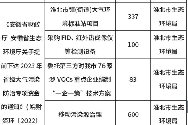 1951.4万、12个项目!淮北市2023年省级大气污染防治资金分配情况公示