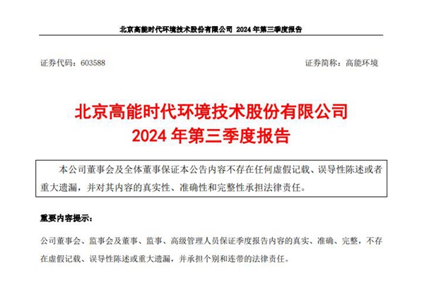 高能环境:前三季度营业收入114.51亿元,同比增长52.88%
