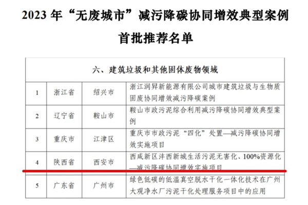 中铁水务沣西污泥处置项目成功入选降碳协同增效典型案例