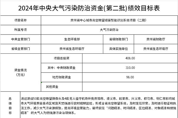 24425万元,贵州下达2024年中央大气污染防治资金(第二批)预算
