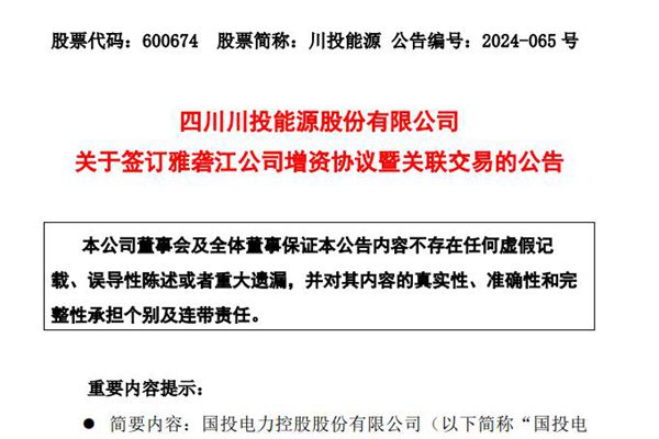 川投能源:拟与国投电力向雅砻江公司增资150亿元