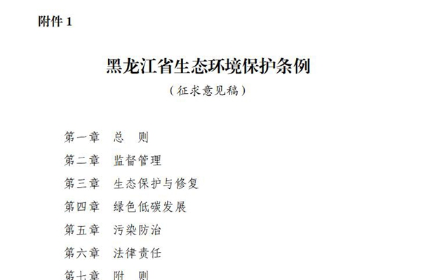 《黑龙江省生态环境保护条例(征求意见稿)》公开征求意见
