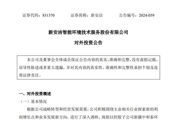 发展新方向!新安洁1.1亿投资建设油基岩屑资源化利用项目