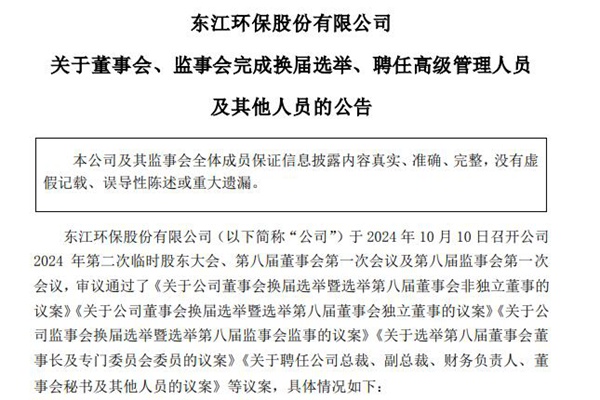 东江环保:第八届董事会完成换届选举 现任董事长不一般