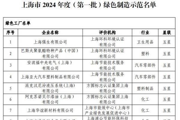 上海市2024年度(第一批)绿色制造示范名单公布...
