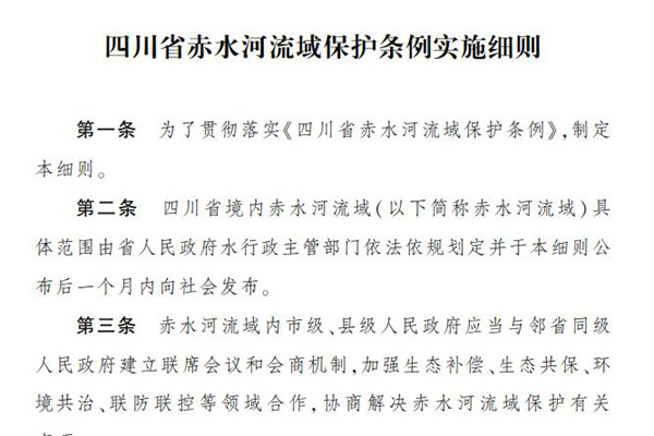 10月1日起实施 《四川省赤水河流域保护条例实施细则》发布