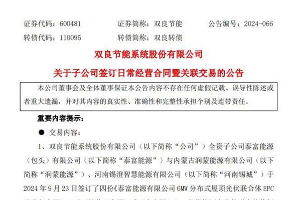 双良节能签订1.29亿元光伏关联交易合同...
