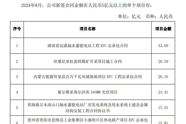 中国电建:8个月新签项目6259个,金额7647.44亿,能源电力占一半多