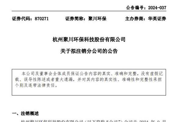 聚川环保拟注销洛阳分公司