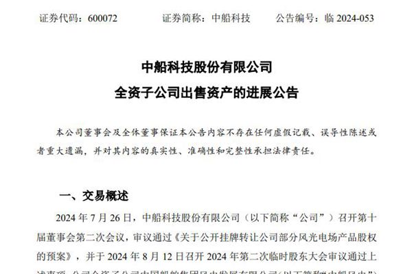 作价8.7亿!中船科技出售5家新能源公司股权