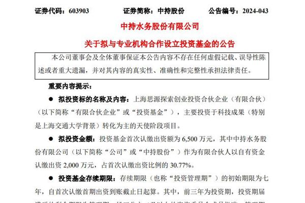 诚邦生态环境:拟以不超过5800万元增资取得芯存科...