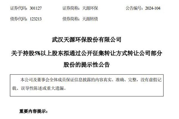 康佳集团拟公开征集转让天源环保5.07%股份