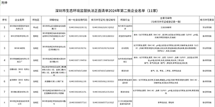 11家,深圳公示生态环境监督执法正面清单2024年第二批企业名单