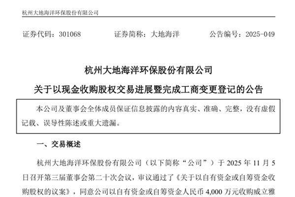大地海洋全资控股 威立雅资源再生杭州公司更名...