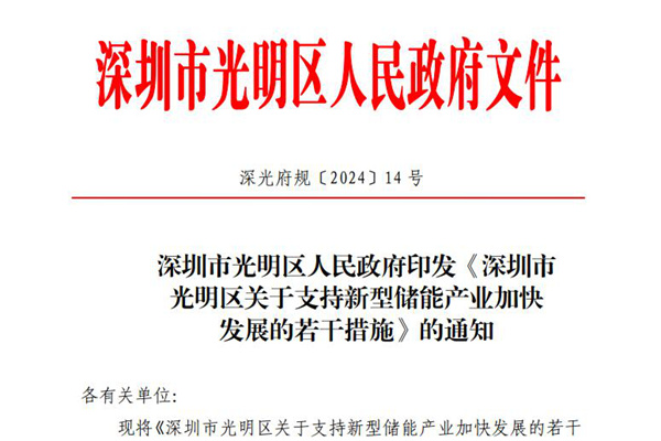 《深圳市光明区关于支持新型储能产业加快发展的若干措施》印发