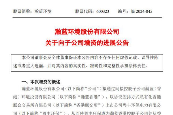 瀚蓝环境私有化粤丰环保有新进展