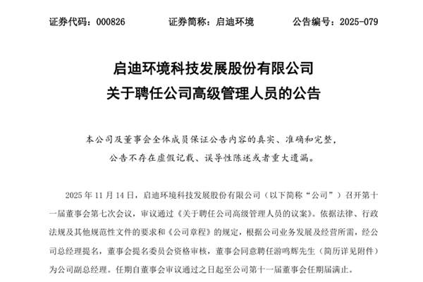根据业务发展需要 启迪环境聘任新副总经理